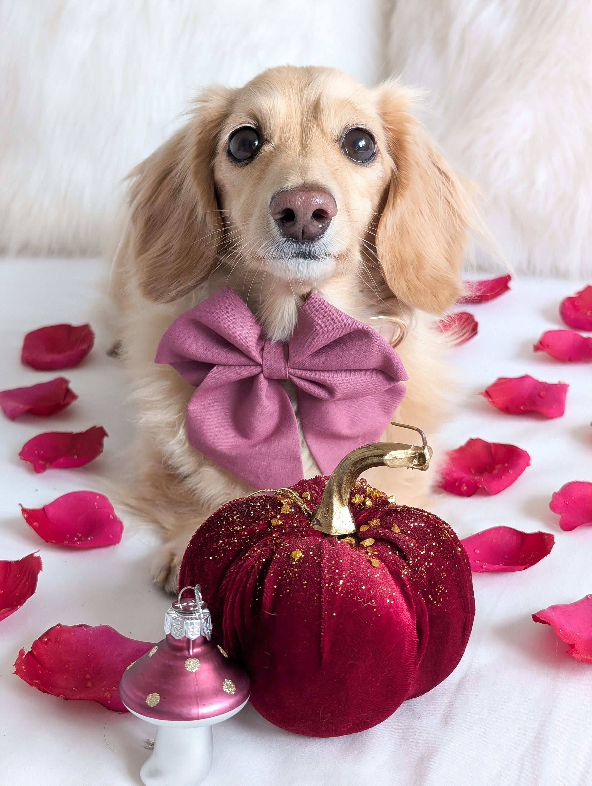 Our sailor bows are designed with a Velcro loop that easily attaches around your dogs collar and can be adjusted to any size, ensuring a comfortable and secure fit.
